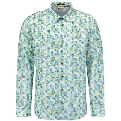 No Excess Shirt Allover Printed With Linen Aqua Prijzen