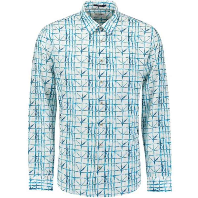 Shirt Allover Printed With Linen Seablue is een langemouw overhemd van het merk No Excess.