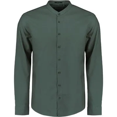 No Excess Shirt Granddad Solid With Linen Dark Steel Prijzen