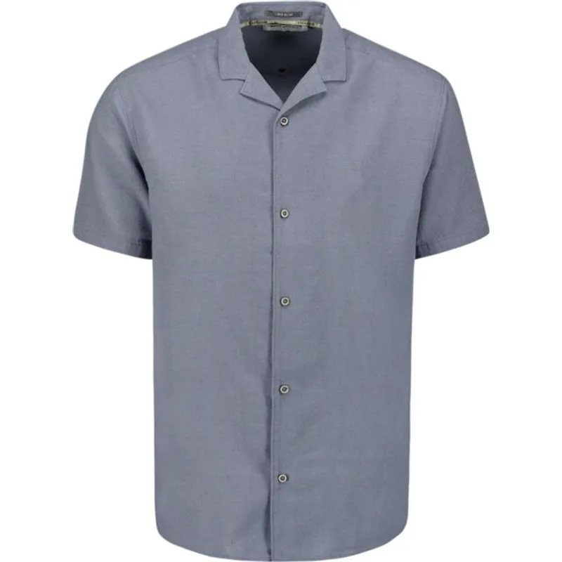 Shirt Short Sleeve Revers Collar So Washed Blue is een kortemouw overhemd van het merk No Excess.