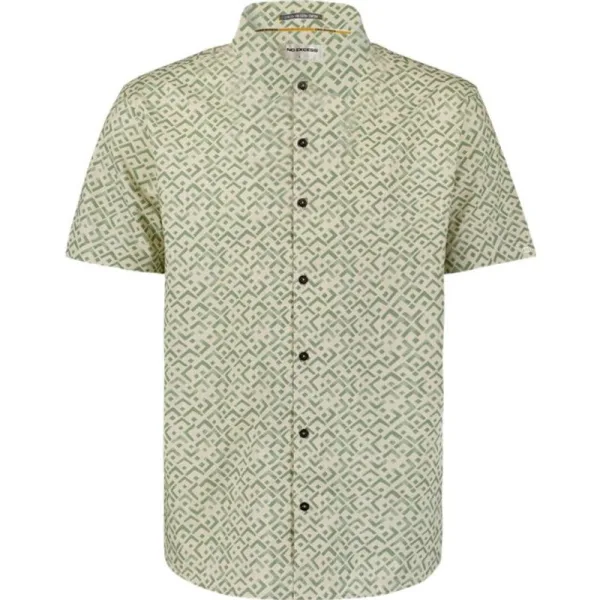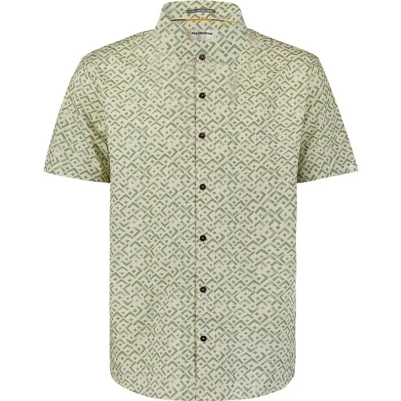 Shirt Short Sleeve Slub Allover Pri Green is een kortemouw overhemd van het merk No Excess.