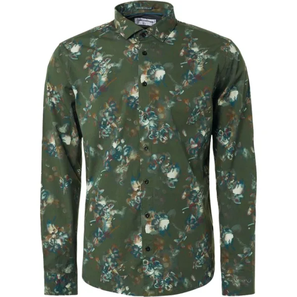 Shirt stretch allover printed dark green is een langemouw overhemd van het merk No Excess.