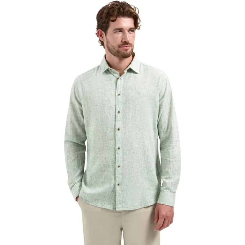 Shirt Two Tone With Linen Green is een langemouw overhemd van het merk No Excess.