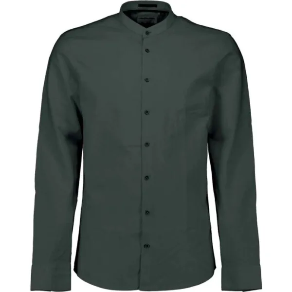 No Excess Shirt with linen granddad dark steel Prijzen