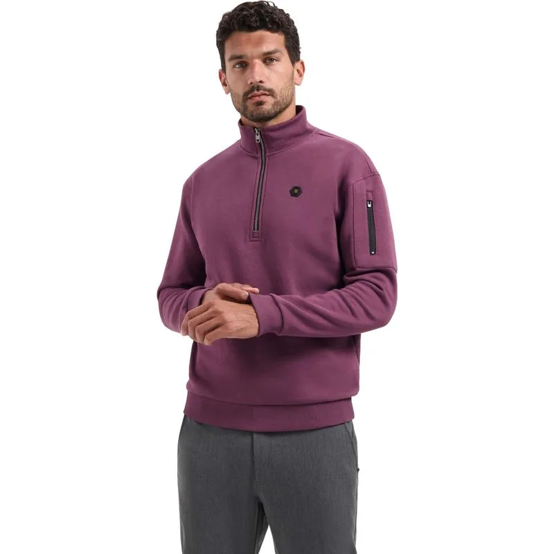 No Excess Sweater half zip brushed dark wine