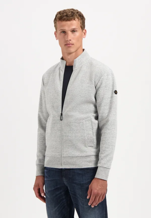 Sweater Full Zip Stand Up-Collar Re Grey Melange is een vest van het merk No Excess.