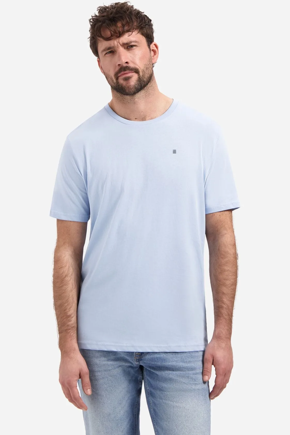 No Excess T-Shirt ronde hals blauw, Effen