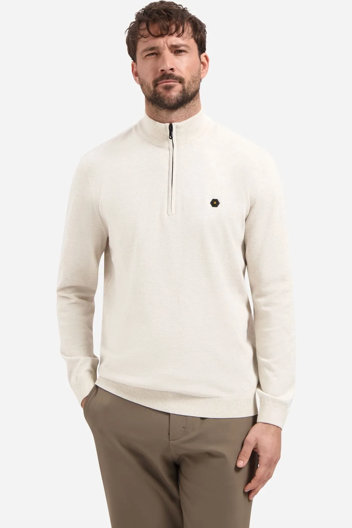 Design: Geribbelde kraag, Geribd ceintuurtje, Halve rits; Type sluiting: Ritssluiting; Materiaal: Knitwear; Halstype: Schipperskraag; Motief: Effen; Extra's: Label plaatje, Fully fashioned; Pasvorm: Normale pasvorm; Armlengte: Lange mouw