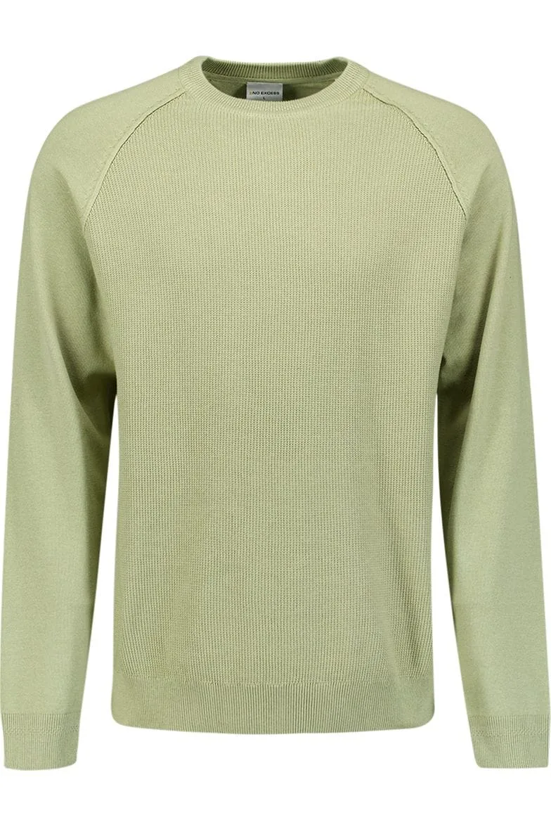No Excess Pullover crewneck solid waffle knit light moss