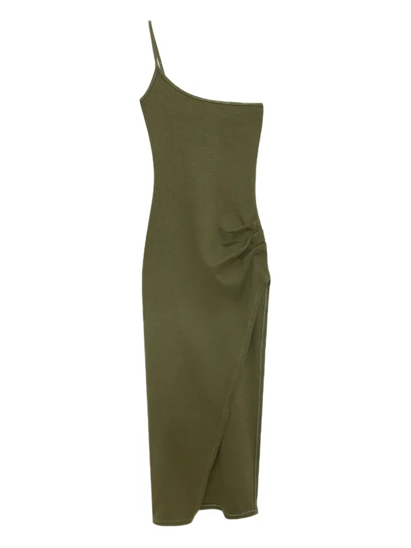 Design: Gevoerde zoom/rand; Materiaal: Katoen; Motief: Effen; Soort bandjes: One-shoulder; Details: Plooien, Gedrapeerd, Wikkel design; Extra's: Verstelbare bandjes, Voelt zacht aan; Lengte: 7/8 lengte; Pasvorm: Aansluitende pasvorm; Armlengte: Mouwloos
