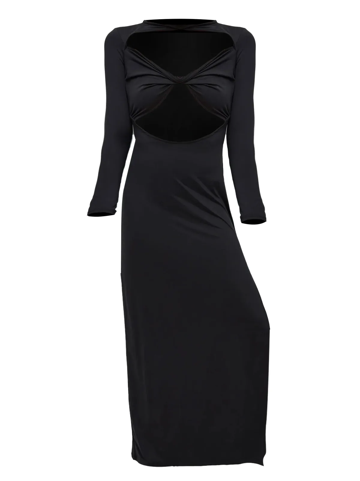 Design: Beenopening; Materiaal: Katoen; Halstype: Ronde hals; Motief: Effen; Details: Cut-outs, Gedrapeerd; Extra's: Op staal naden; Lengte: Lang/maxi; Snit: Getailleerd; Pasvorm: Aansluitende pasvorm; Armlengte: Lange mouw