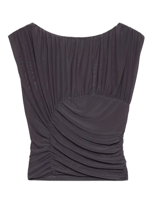 Blouse type: Blouseshirt; Design: Gevoerde zoom/rand, Gesneden mouw, Uitgesneden rug; Motief: Effen; Kraag: Zonder kraag; Details: Gedrapeerd; Extra's: Op staal naden; Pasvorm: Slanke pasvorm; Armlengte: Mouwloos; Lengte: Normale lengte