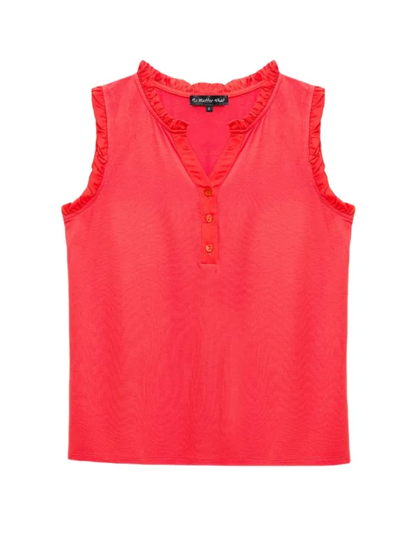 Blouse type: Wijde blouse; Design: Gevoerde zoom/rand, Placket, Rechte zoom; Type sluiting: Knoopsluiting; Materiaal: Viscose; Motief: Effen; Kraag: Tuniek kraag; Details: Ruches; Extra's: Op staal naden, Koele grip; Pasvorm: Normale pasvorm; Armlengte: Mouwloos; Lengte: Normale lengte