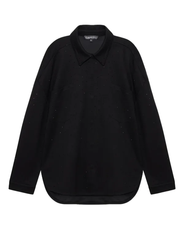 Blouse type: Klassieke blouse; Design: Borstzak; Type sluiting: Knoopsluiting; Materiaal: Viscose; Motief: Effen; Kraag: Kentkraag; Details: Sierstenen; Extra's: Gladde stof; Pasvorm: Losse pasvorm; Armlengte: Lange mouw; Lengte: Normale lengte