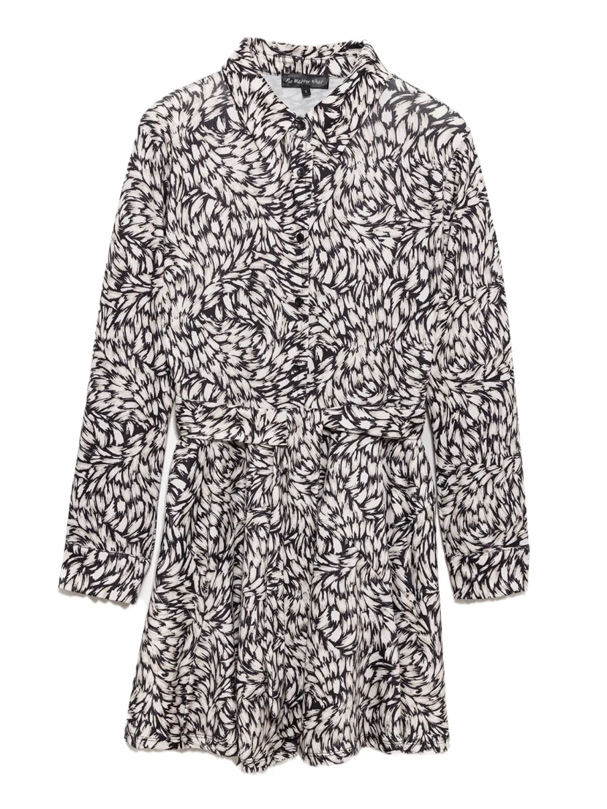 Design: Gevoerde zoom/rand, Knop placket, Tailleriem; Type sluiting: Knoopsluiting; Kraag: Kentkraag; Details: Gedrapeerd; Extra's: All-over patroon, Voelt zacht aan; Lengte: Kort/mini; Snit: Getailleerd; Pasvorm: Normale pasvorm; Armlengte: Lange mouw