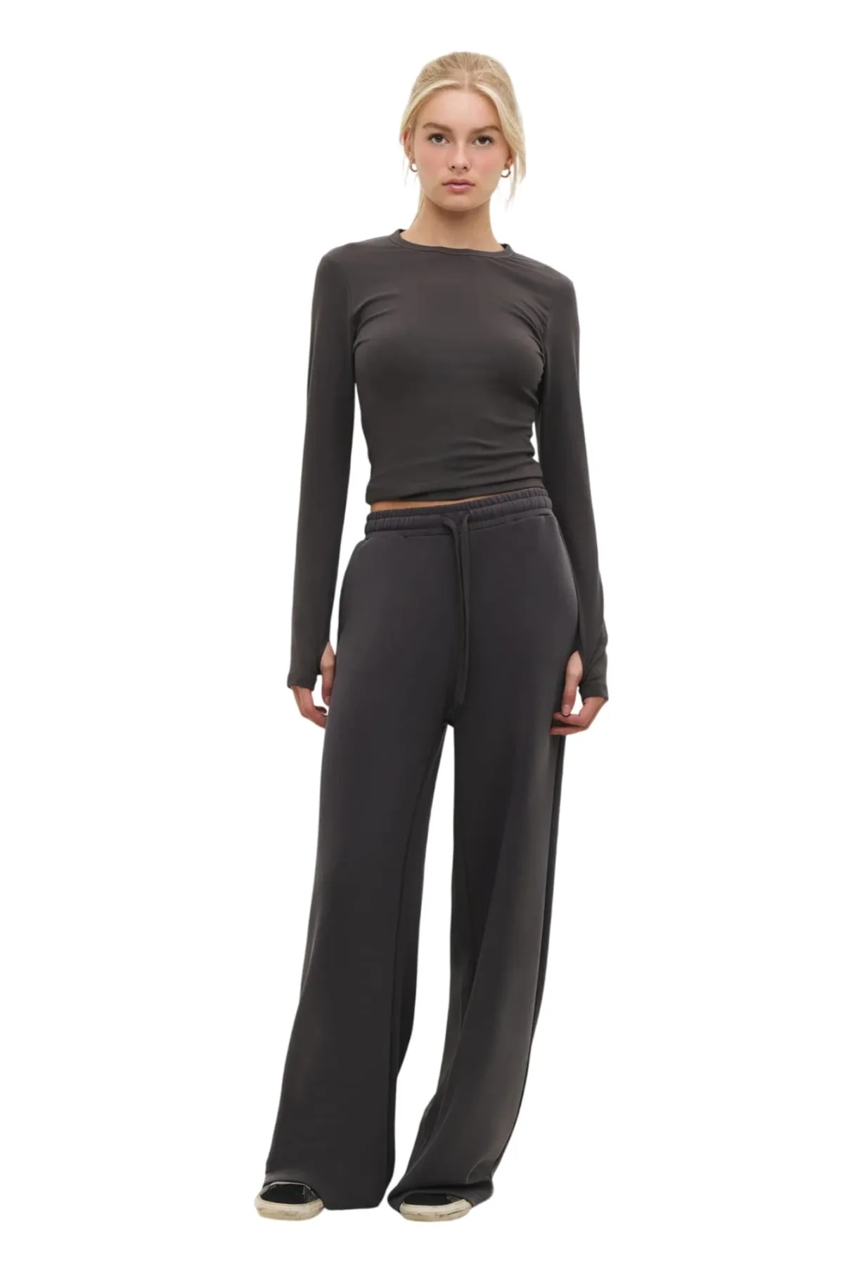 Design: Taille met trekkoord, Elastische taille/zoom, Zakken aan de zijkant; Materiaal: Sweatstof; Motief: Effen; Extra's: Op staal naden; Lengte: Lang/maxi; Pasvorm: Wide leg; Taillehoogte: Mid waist