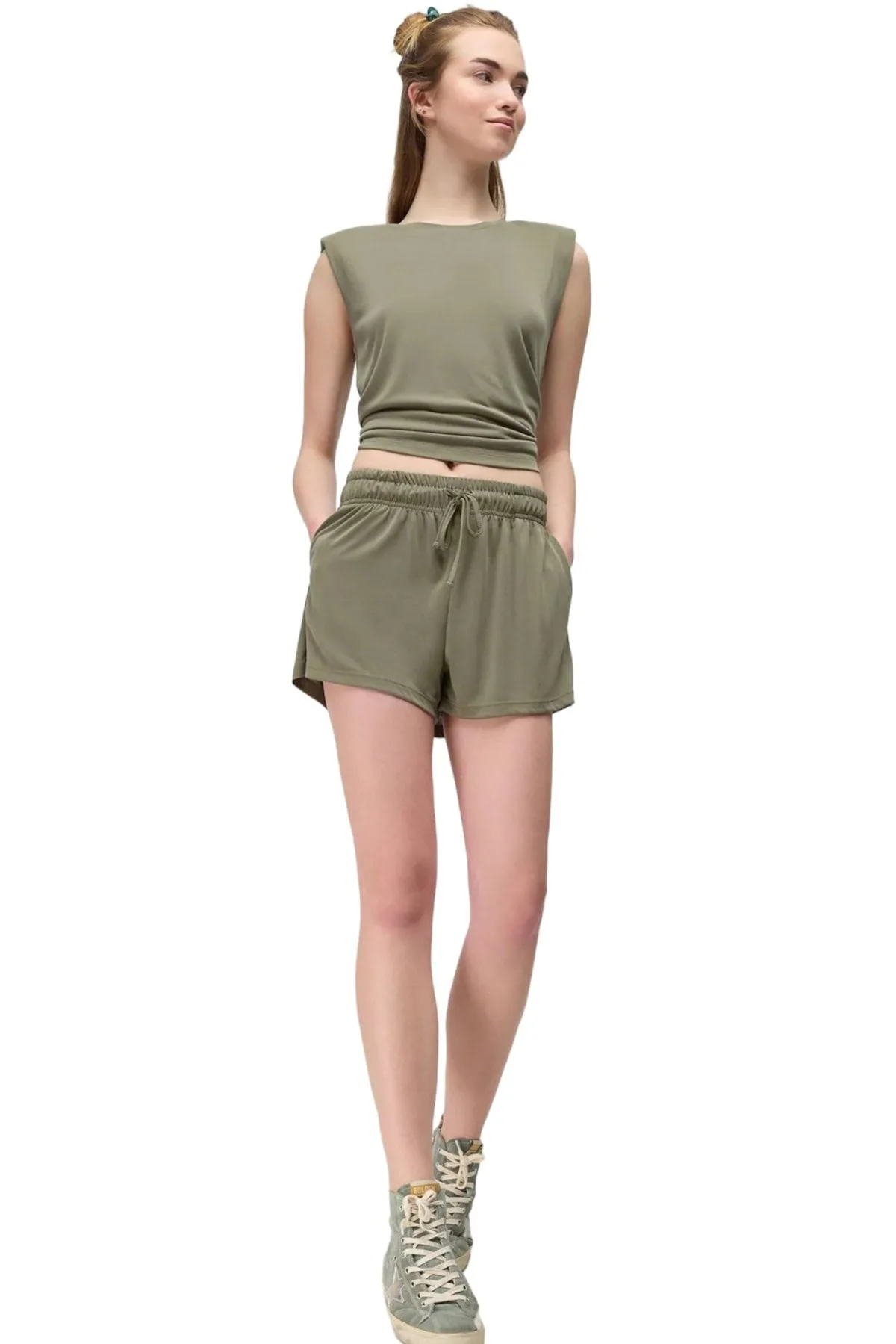 Design: Gevoerde zoom/rand, Taille met trekkoord, Elastische taille/zoom; Motief: Effen; Details: Gedrapeerd; Extra's: Lichte stof; Lengte: Kort/mini; Pasvorm: Regular; Taillehoogte: Mid waist