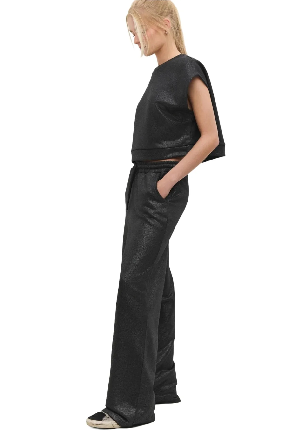 Design: Elastische taille/zoom; Motief: Effen; Extra's: Glitterend, Op staal naden; Lengte: Lang/maxi; Pasvorm: Loosefit; Taillehoogte: Mid waist