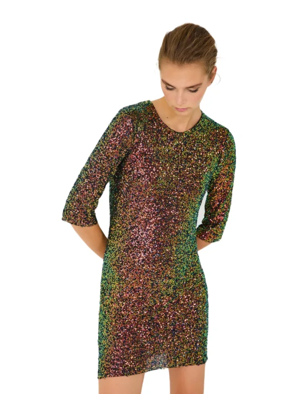 Design: Rechte zoom; Halstype: Ronde hals; Details: Pailletten; Extra's: Glitterend; Lengte: Kort/mini; Snit: Getailleerd; Pasvorm: Slanke pasvorm; Armlengte: Halve mouw