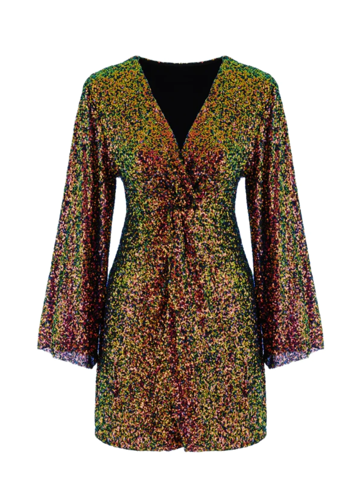Design: Rechte zoom; Halstype: V-hals; Details: Pailletten; Extra's: Met textuur; Lengte: Kort/mini; Snit: Getailleerd; Pasvorm: Normale pasvorm; Armlengte: Lange mouw