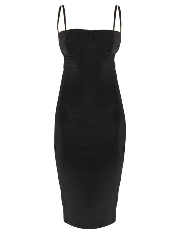 Design: Gevoerde zoom/rand; Halstype: Carréhals; Motief: Effen; Soort bandjes: Spaghettibandjes; Extra's: Op staal naden; Lengte: Knielengte; Snit: Figuur omarmend; Pasvorm: Aansluitende pasvorm; Armlengte: Mouwloos