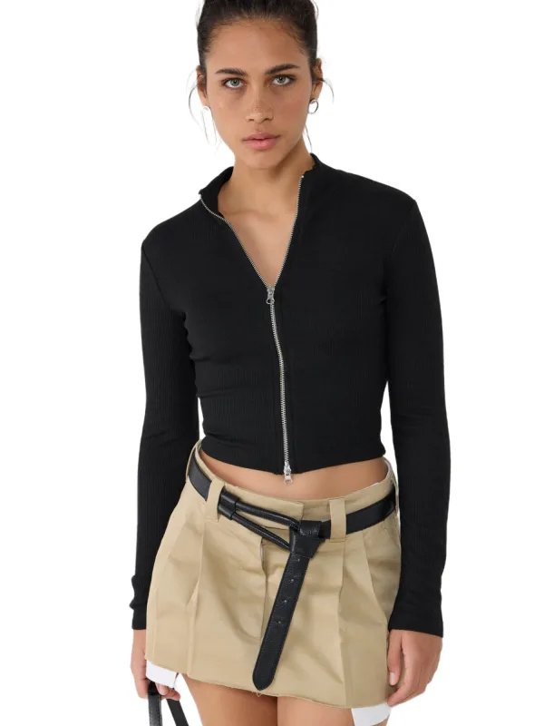 Design: Geribbeld gebreid, Combideelbare ritssluiting; Type sluiting: Ritssluiting; Materiaal: Knitwear; Halstype: Opstaande kraag; Motief: Effen; Extra's: Op staal naden, Met textuur; Pasvorm: Slanke pasvorm; Armlengte: Lange mouw; Lengte: Korte pasvorm