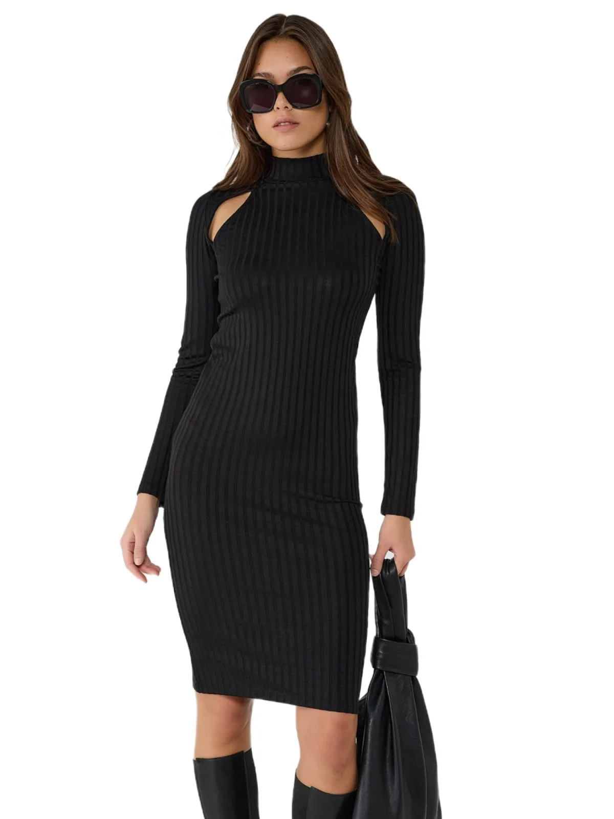 Design: Rechte zoom; Materiaal: Knitwear; Halstype: Opstaande kraag; Motief: Effen; Details: Cut-outs; Extra's: Voelt zacht aan; Lengte: Knielengte; Snit: Figuur omarmend; Pasvorm: Slanke pasvorm; Armlengte: Lange mouw