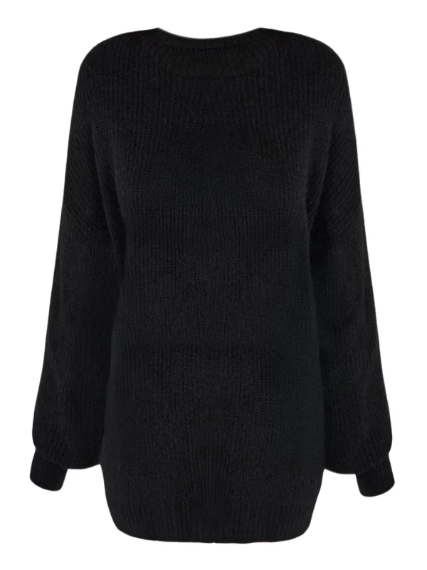 Design: Pofmouwen, Geribd ceintuurtje; Materiaal: Knitwear; Halstype: Ronde hals; Motief: Effen; Extra's: Op staal naden; Lengte: Kort/mini; Snit: Recht; Pasvorm: Normale pasvorm; Armlengte: Lange mouw; Lengte: Lange pasvorm