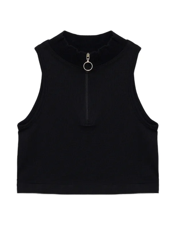 Design: Geribbeld gebreid, Halve rits; Materiaal: Knitwear; Halstype: Schipperskraag; Motief: Effen; Soort bandjes: Brede bandjes; Extra's: Fully fashioned, Met textuur; Pasvorm: Aansluitende pasvorm; Armlengte: Mouwloos; Lengte: Korte pasvorm