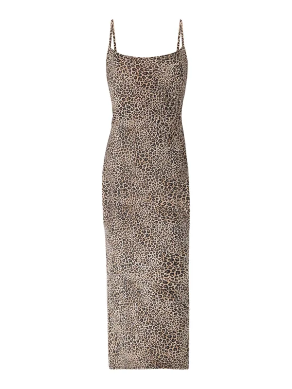 Design: Gevoerde zoom/rand; Halstype: Boothals; Motief: Dierenprint; Soort bandjes: Spaghettibandjes; Extra's: All-over patroon; Lengte: 7/8 lengte; Pasvorm: Aansluitende pasvorm; Armlengte: Mouwloos