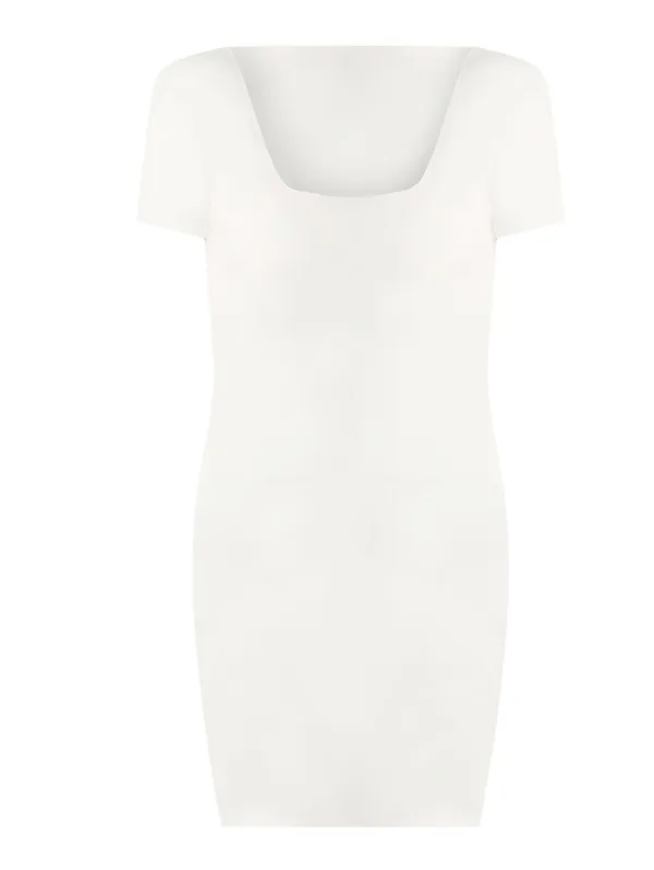 Design: Gevoerde zoom/rand; Materiaal: Viscose; Halstype: Carréhals; Motief: Effen; Extra's: Op staal naden, Voelt zacht aan; Lengte: Kort/mini; Pasvorm: Normale pasvorm; Armlengte: Kwartmouw