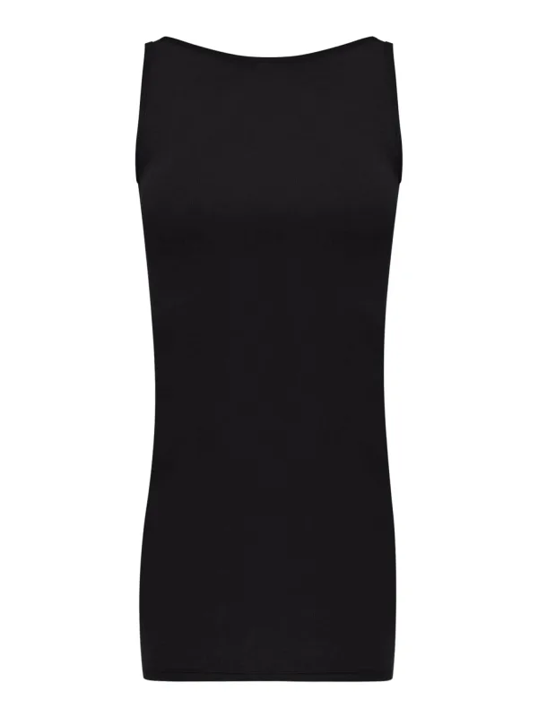 Design: Geribd ceintuurtje; Materiaal: Katoen; Halstype: Boothals; Motief: Effen; Soort bandjes: Brede bandjes; Details: Cut-outs; Extra's: Op staal naden; Lengte: Kort/mini; Pasvorm: Aansluitende pasvorm; Armlengte: Mouwloos
