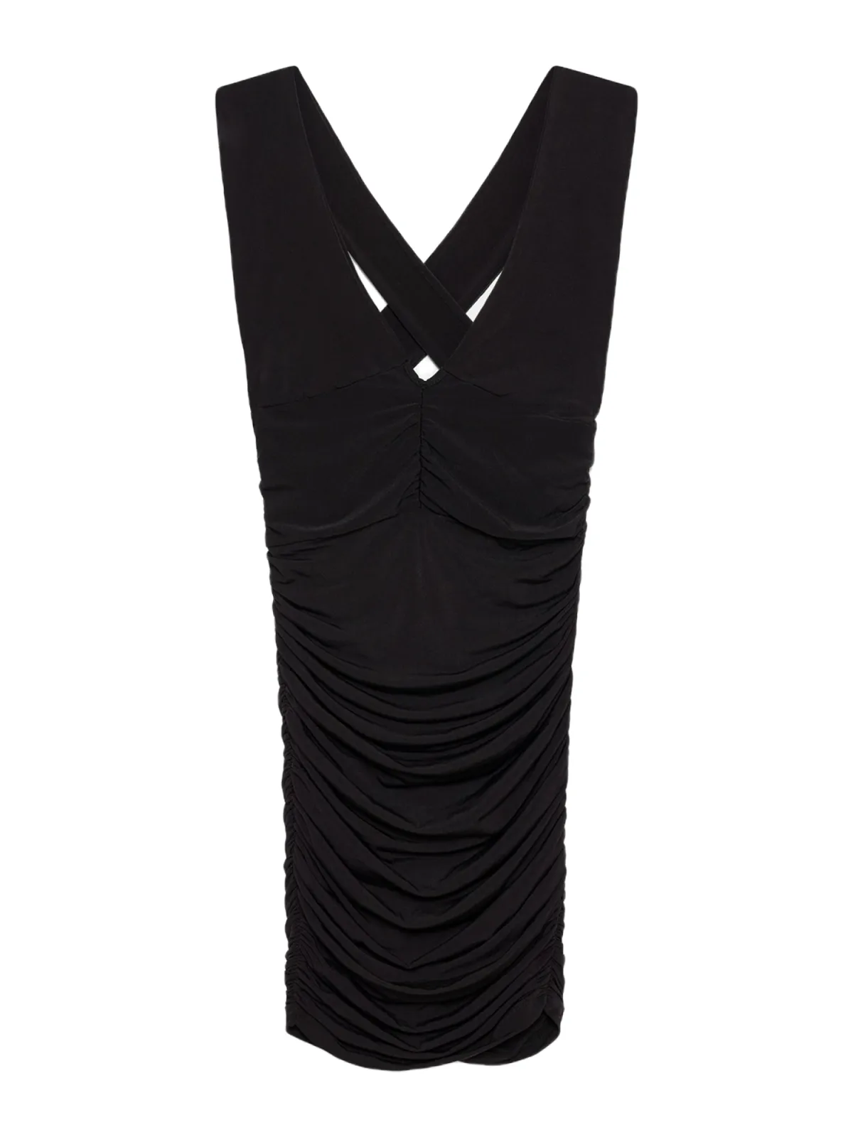 Design: Gevoerde zoom/rand; Materiaal: Viscose; Motief: Effen; Soort bandjes: Brede bandjes; Details: Cut-outs, Gedrapeerd; Extra's: Lichte stof; Lengte: Kort/mini; Snit: Figuur omarmend; Pasvorm: Aansluitende pasvorm; Armlengte: Mouwloos