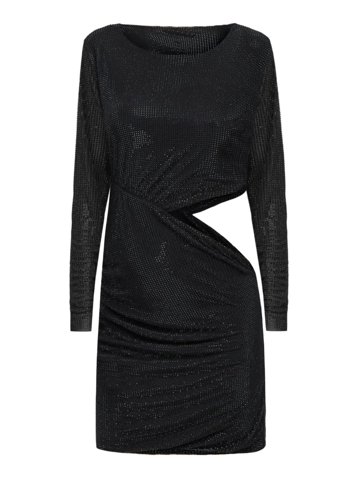 Design: Gevoerde zoom/rand; Halstype: Ronde hals; Motief: Effen; Soort bandjes: Normale bandjes; Details: Cut-outs, Sierstenen; Extra's: Glitterend, Op staal naden; Lengte: Kort/mini; Pasvorm: Slanke pasvorm; Armlengte: Lange mouw