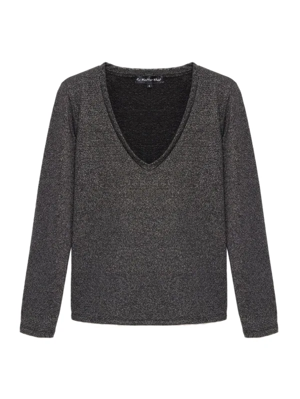 Design: Gevoerde zoom/rand, Diepe snit/decolleté; Materiaal: Jersey; Halstype: V-hals; Motief: Effen; Extra's: Glitterend; Pasvorm: Losse pasvorm; Armlengte: Lange mouw; Lengte: Normale lengte
