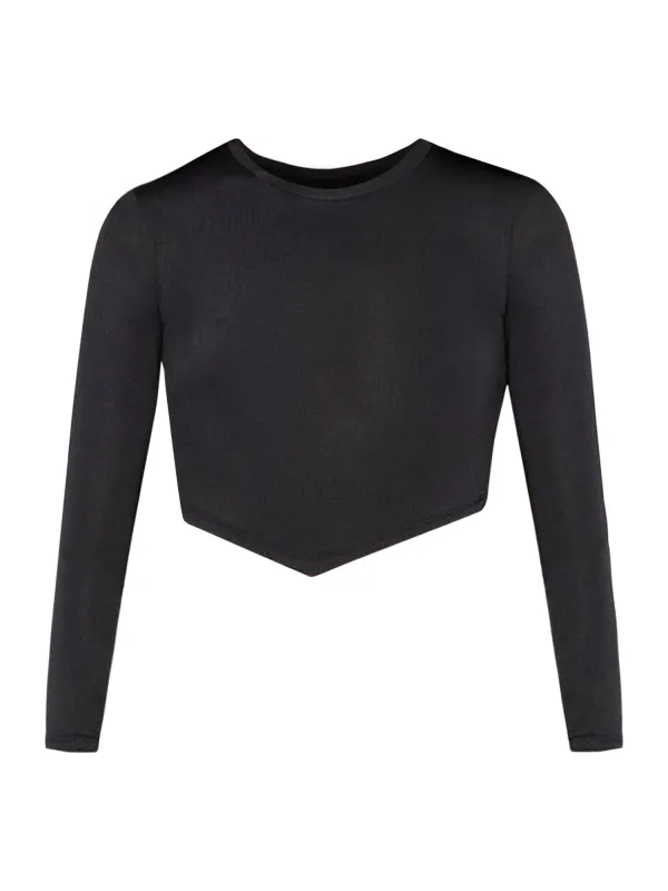 Design: Asymmetrische zoom; Materiaal: Jersey; Halstype: Ronde hals; Motief: Effen; Details: Sierstenen; Extra's: Op staal naden; Pasvorm: Aansluitende pasvorm; Armlengte: Lange mouw; Lengte: Korte pasvorm