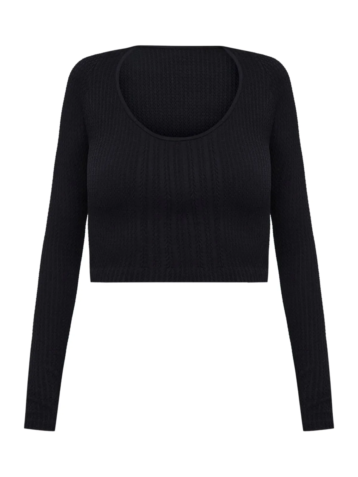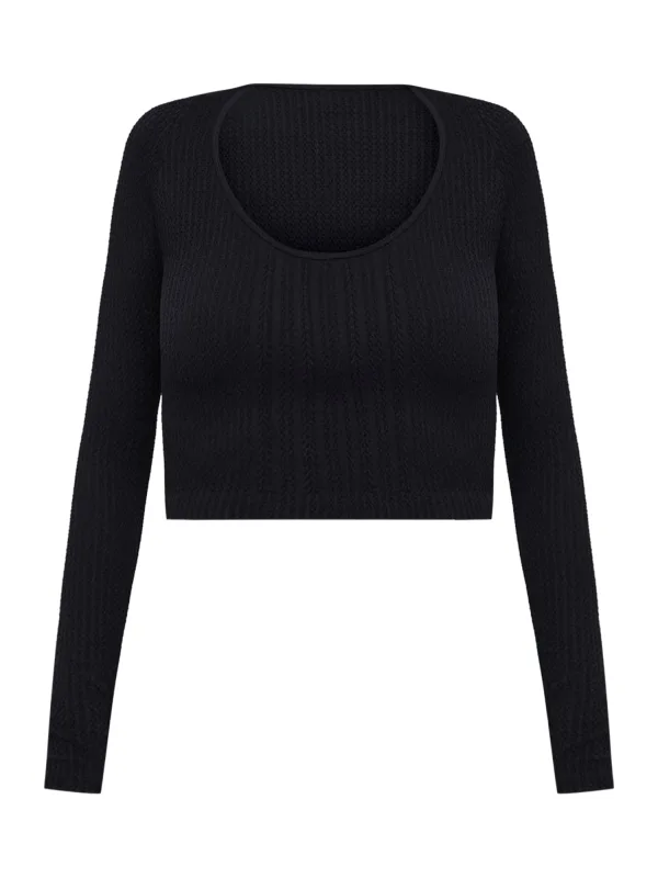 Design: Gevoerde zoom/rand; Materiaal: Jersey; Halstype: Ronde hals; Motief: Effen; Extra's: Op staal naden; Pasvorm: Normale pasvorm; Armlengte: Lange mouw; Lengte: Korte pasvorm