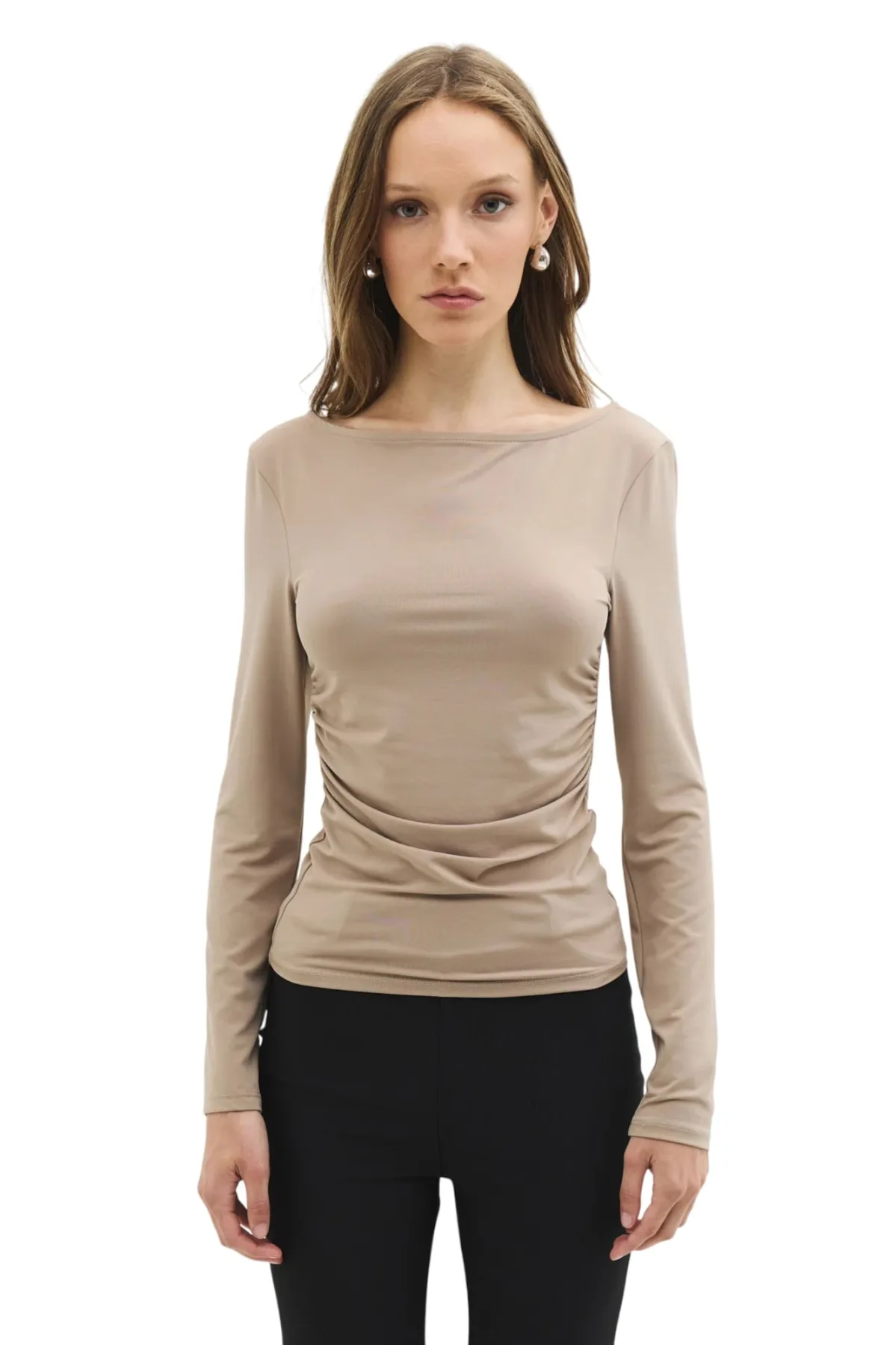 Design: Gevoerde zoom/rand, Getailleerd model; Materiaal: Jersey; Halstype: Boothals; Motief: Effen; Details: Gedrapeerd; Extra's: Op staal naden; Pasvorm: Normale pasvorm; Armlengte: Lange mouw; Lengte: Normale lengte