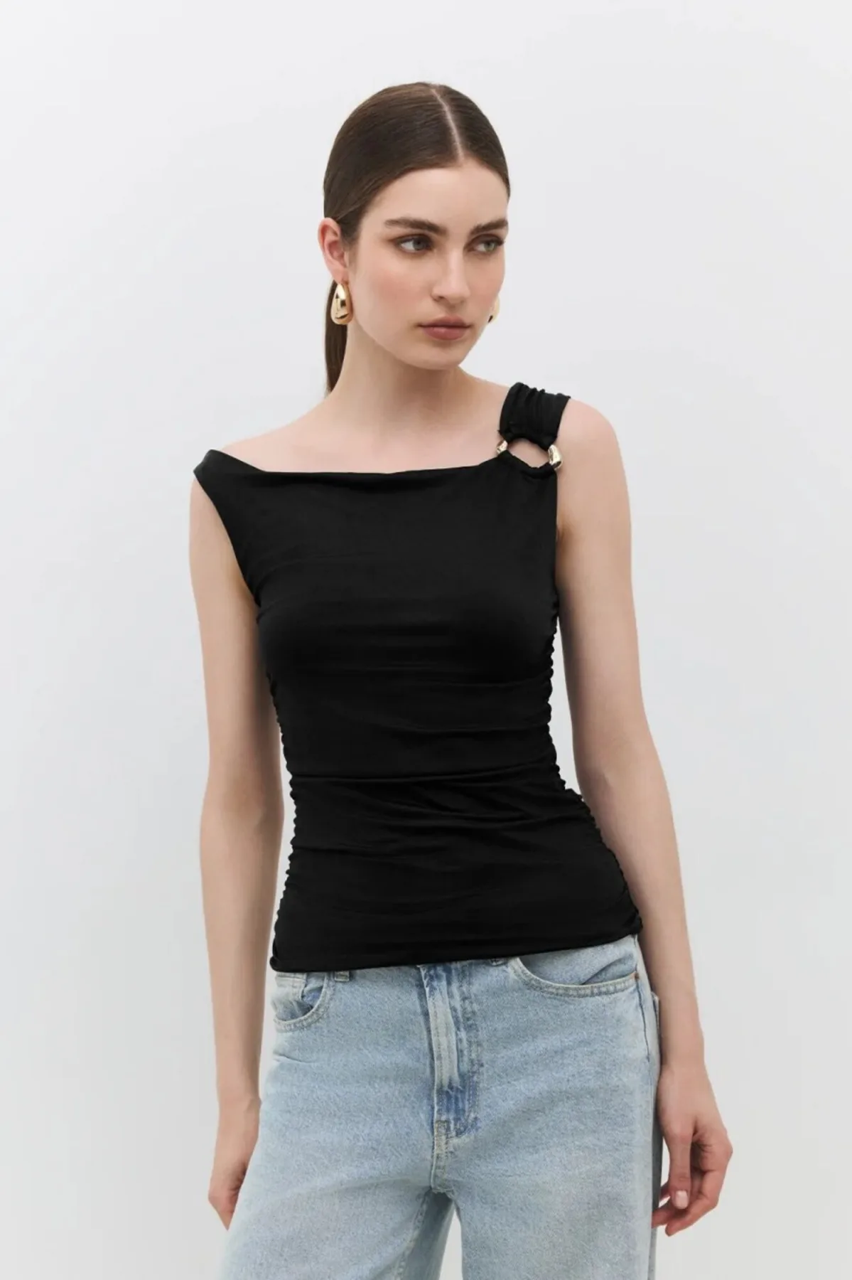 Design: Gevoerde zoom/rand; Materiaal: Jersey; Motief: Effen; Details: Gedrapeerd; Extra's: Op staal naden; Pasvorm: Slanke pasvorm; Armlengte: Mouwloos; Lengte: Normale lengte