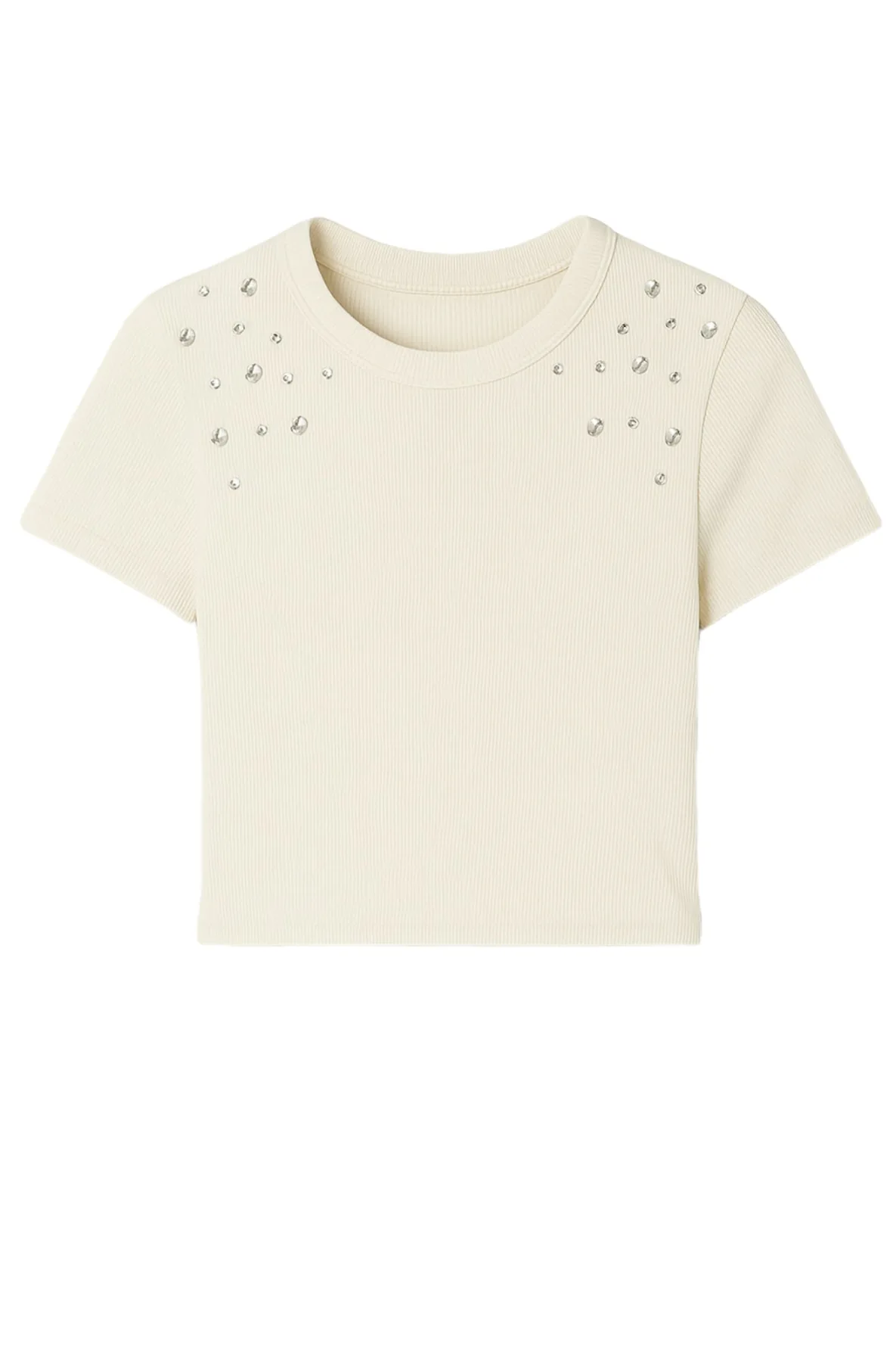 Design: Gevoerde zoom/rand; Materiaal: Jersey; Halstype: Ronde hals; Motief: Effen; Details: Sierstenen; Extra's: Voelt zacht aan; Pasvorm: Slanke pasvorm; Armlengte: Kwartmouw; Lengte: Korte pasvorm
