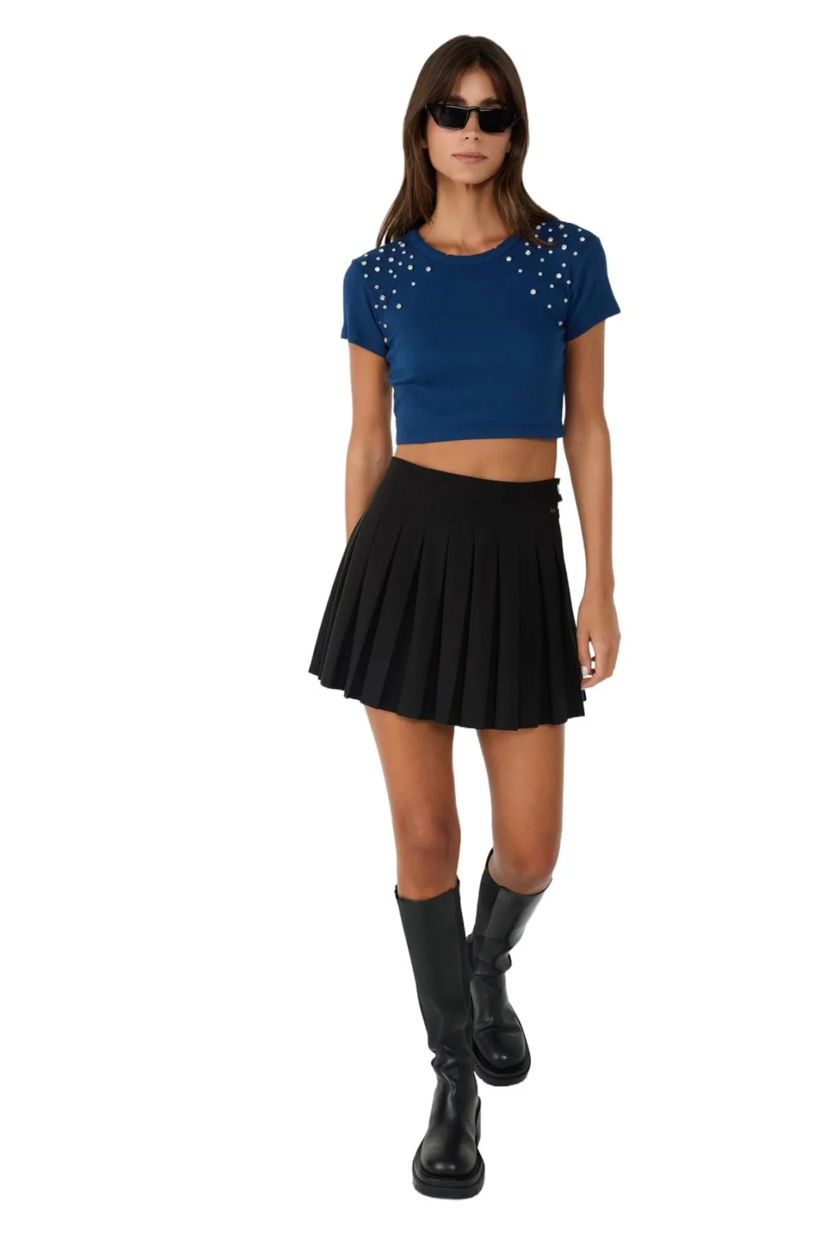 Design: Gevoerde zoom/rand; Materiaal: Jersey; Halstype: Ronde hals; Motief: Effen; Details: Sierstenen; Extra's: Voelt zacht aan; Pasvorm: Slanke pasvorm; Armlengte: Kwartmouw; Lengte: Korte pasvorm
