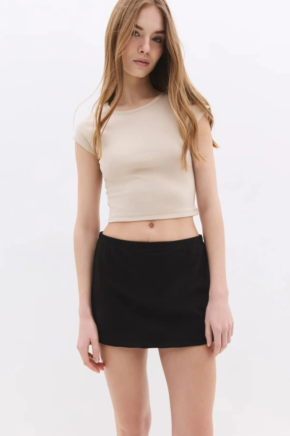 Design: Gevoerde zoom/rand, Zonder kraag; Type sluiting: Slip; Materiaal: Jersey; Halstype: Ronde hals; Motief: Effen; Extra's: Op staal naden; Pasvorm: Slanke pasvorm; Armlengte: Kwartmouw; Lengte: Korte pasvorm