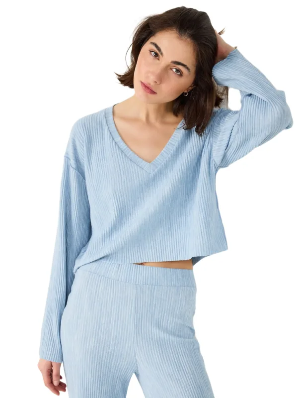 Design: Gevoerde zoom/rand; Materiaal: Jersey; Halstype: V-hals; Motief: Effen; Extra's: Met textuur; Pasvorm: Normale pasvorm; Armlengte: Lange mouw; Lengte: Normale lengte