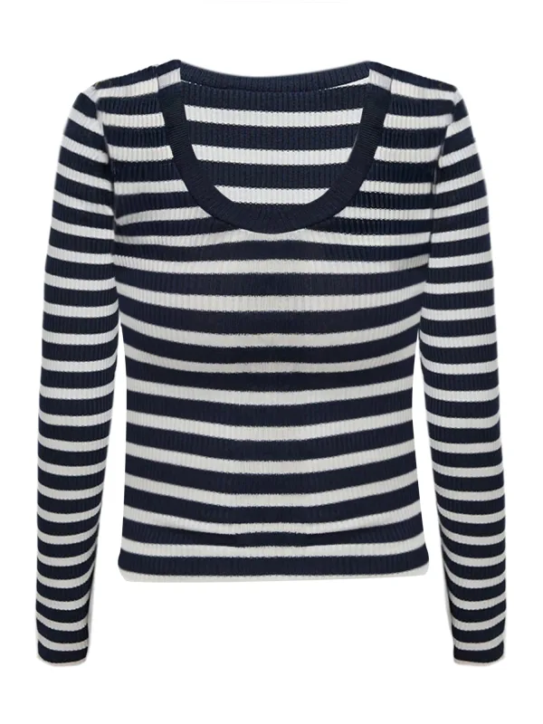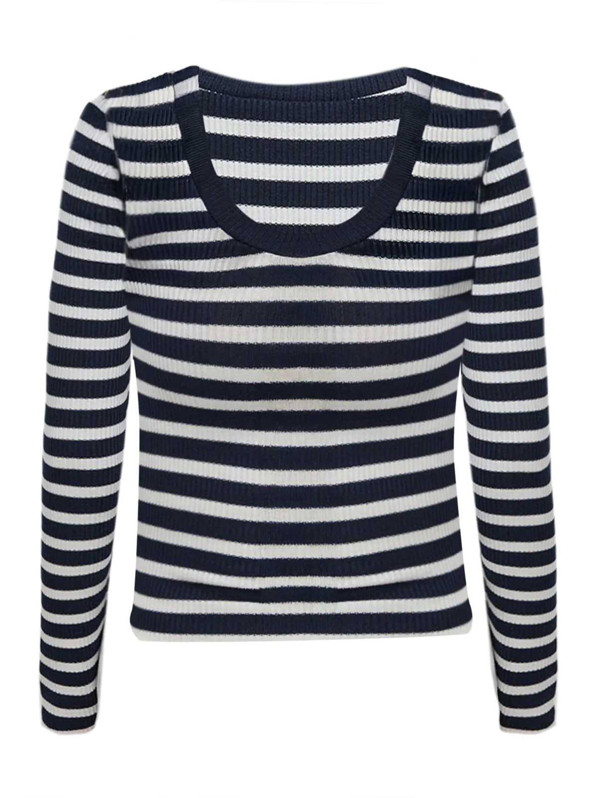 Design: Geribbelde kraag, Geribbeld gebreid; Materiaal: Jersey; Halstype: Ronde hals; Motief: Gestreept; Extra's: All-over patroon; Pasvorm: Slanke pasvorm; Armlengte: Lange mouw; Lengte: Normale lengte