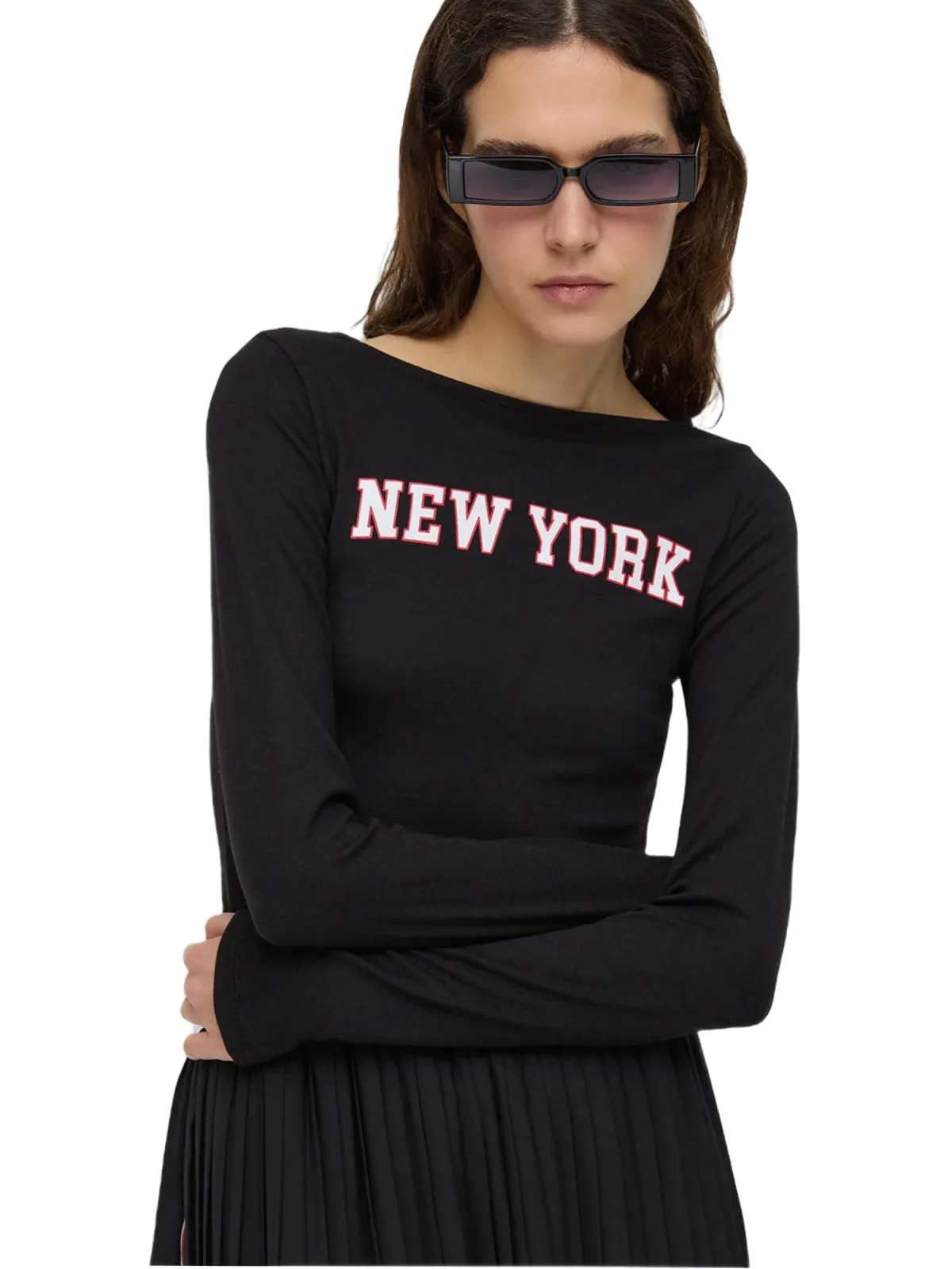 Design: Gevoerde zoom/rand; Materiaal: Jersey; Halstype: Boothals; Motief: Tekst print; Extra's: Voelt zacht aan; Pasvorm: Slanke pasvorm; Armlengte: Lange mouw; Lengte: Normale lengte