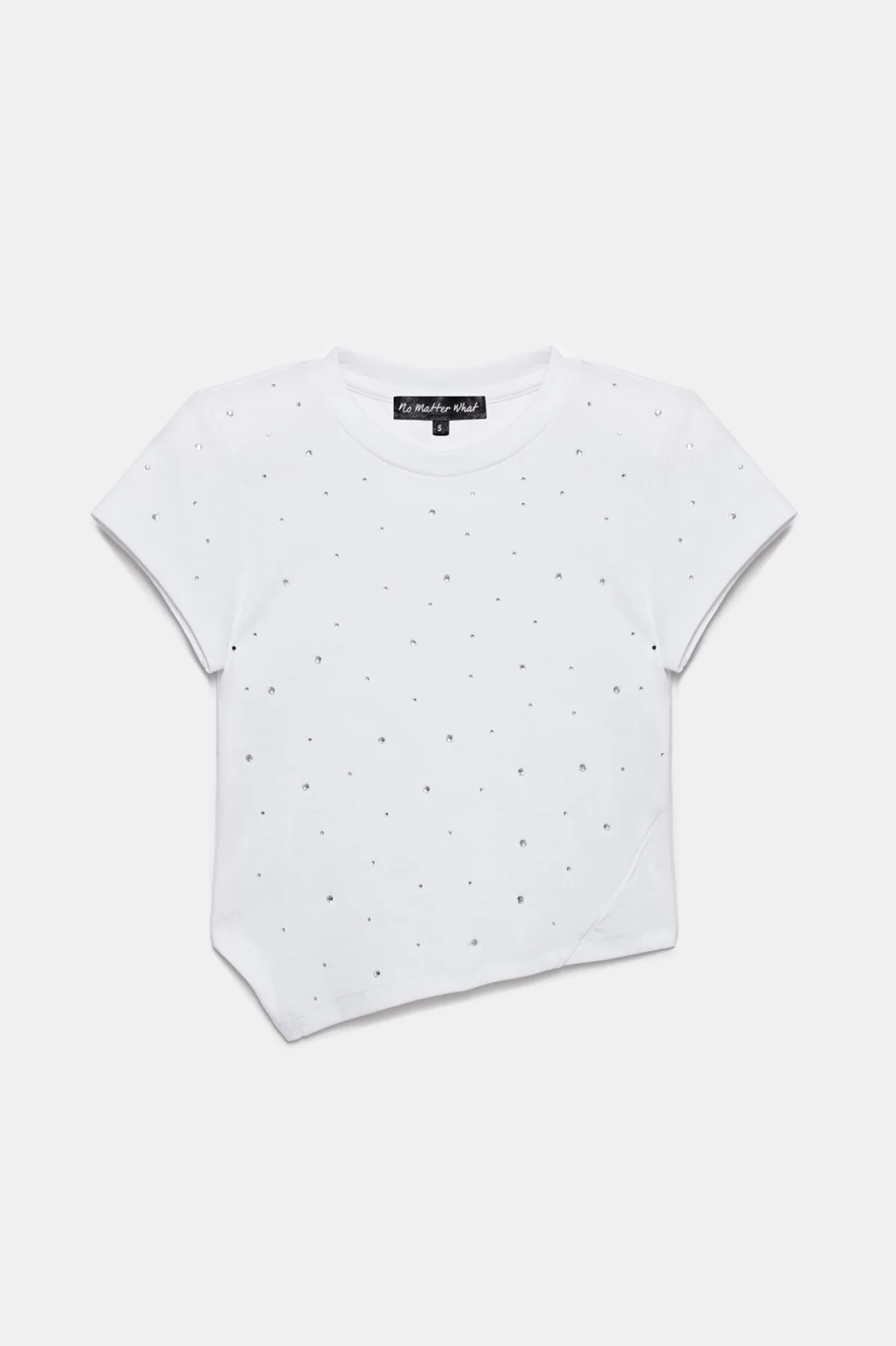 Design: Nektape; Materiaal: Jersey; Halstype: Ronde hals; Kraag: Zonder kraag; Details: Sierstenen; Extra's: Voelt zacht aan; Pasvorm: Slanke pasvorm; Armlengte: Kwartmouw; Lengte: Korte pasvorm