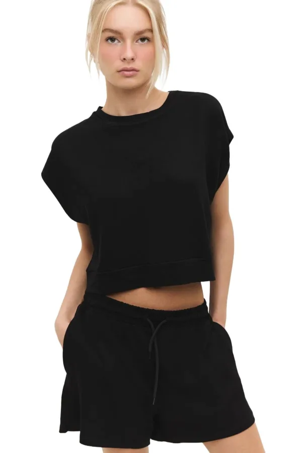Design: Geribd ceintuurtje; Materiaal: Jersey; Halstype: Ronde hals; Motief: Effen; Extra's: Op staal naden; Pasvorm: Normale pasvorm; Armlengte: Kwartmouw; Lengte: Normale lengte