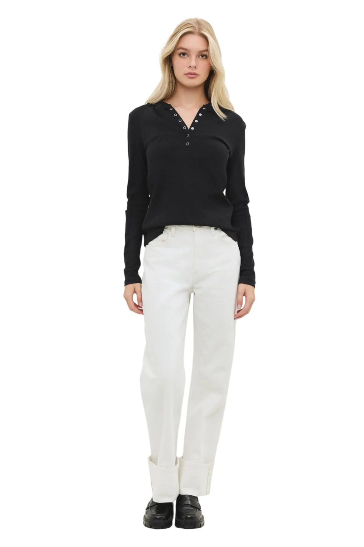 Blouse type: Blouseshirt; Design: Gevoerde zoom/rand; Materiaal: Jersey; Halstype: Uitgesneden hals; Motief: Effen; Extra's: Applicaties, Op staal naden; Pasvorm: Normale pasvorm; Armlengte: Lange mouw; Lengte: Normale lengte