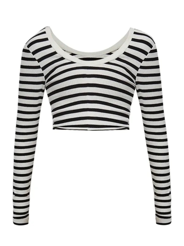 Design: Geribbeld gebreid; Halstype: Ronde hals; Motief: Gestreept; Extra's: All-over patroon; Pasvorm: Slanke pasvorm; Armlengte: Lange mouw; Lengte: Korte pasvorm