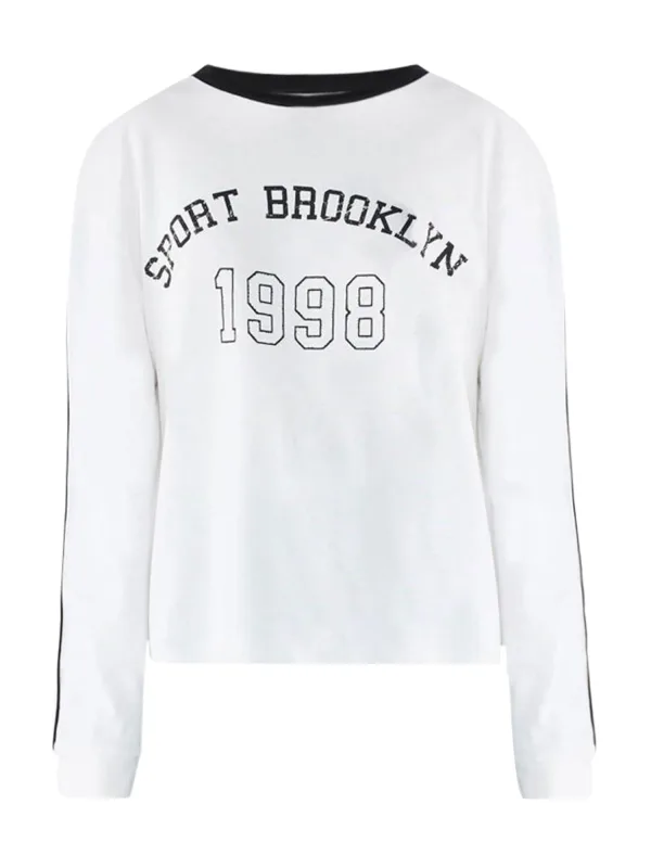 Design: Gevoerde zoom/rand; Materiaal: Jersey; Halstype: Ronde hals; Motief: Tekst print; Details: Zijstrepen; Extra's: Voelt zacht aan; Pasvorm: Normale pasvorm; Armlengte: Lange mouw; Lengte: Normale lengte